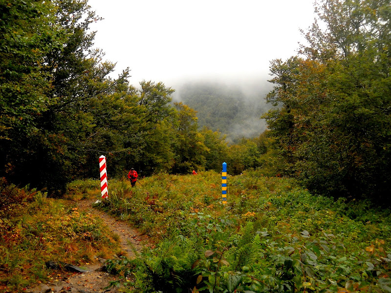 Krótka jazda busem na Widełki i ruszamy niebieskim szlakiem na Bukowe Berdo. Początkowo monotonne podejście lasem. Piotr coś tam nieśmiało zaczyna marudzić, lecz szybko zostaje postawiony do pionu przez resztę ekipy. Łudzimy się, że już więcej nie będzie, jednak kolejne dni pokazały, iż było to tylko preludium. Co gorsza marudny nastrój zaczął udzielać się wszystkim po kolei, tak więc cały wypad najczęściej wypowiadanym zdaniem było - "Przestań marudzić".