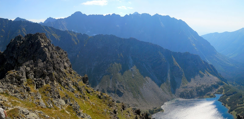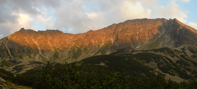 Przez ten pieroński korek na łańcuchach mamy kolejne dobre pół godziny poślizgu, a słoneczko powoli chowa się za Gładkim Wierchem. Robi się niewesoło, tym bardziej, że mamy tylko 2 latarki na czterech luda (moja została w drugim plecaku, po prostu zapomniałem przełożyć).